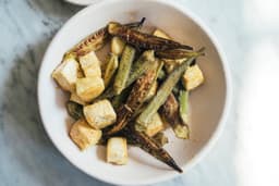 Crispy okra and tofu with savory chicken salt