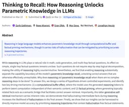 Complementing calibration efforts, researchers have made strides in improving models’ reasoning capabilities. The "Thinking to Recall" framework exemplifies how structured reasoning modules enable models to better access and leverage their internal parametric knowledge. This results in improved performance on complex, multi-step inference tasks and fosters transparency—an essential factor for trust in sensitive domains.