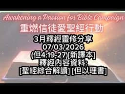 新增的短講《重燃信徒愛聖經行動:3月釋經靈修分享(但5:1-9)》細膩解讀巴比倫王的審判異象,強調神掌管歷史與末世公義,呼召信徒警醒盼望神國的完全。 -