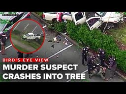 RAW VIDEO: Sheriff's helicopter captures moment murder suspect crashes truck during a high-speed chase. The footage, lasting over 5 minutes, has been viewed thousands of times, raising questions about the role of aerial surveillance in law enforcement and its impact on public perception.