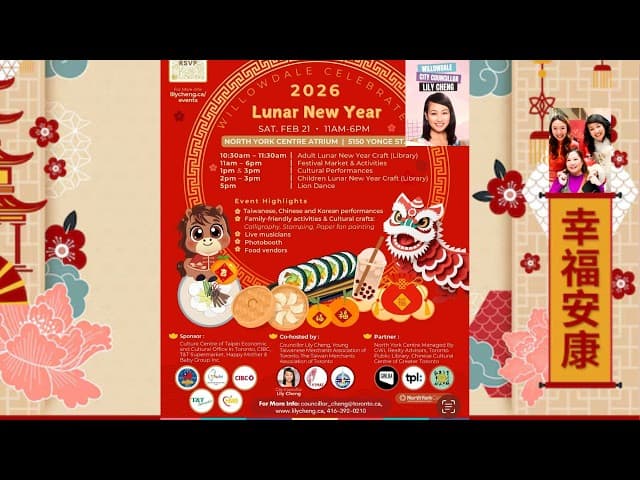 A notable cultural highlight was the **2026 Lunar New Year celebrations in North York**, which included vibrant lion dance performances and community gatherings. These festivities, showcased in popular media like the YouTube video *"2026 Lunar New Year in North York! 🧧 Lion Dance & Community Highlights with Lily Cheng"*, exemplify Toronto’s vibrant cultural pride and community spirit.