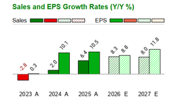 - Revenue climbed to $143.8 billion, a 3.78% year-over-year increase, with EPS of $2.84, beating consensus expectations by over 11%. This strong performance prompted a notable upward revision of the Zacks Consensus EPS forecast to $8.41 for FY26, up $0.26, signaling improved profitability outlook.