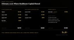 - The healthcare sector saw massive funding, with $1.3 billion invested in February alone. Capital is flowing into AI-native clinical workflows, value-based care infrastructure, and personalized diagnostics, highlighting the sector’s rapid maturation.