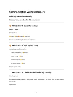 The "Communication Without Borders – Coloring & Emotions Activity" provides a creative means for children to explore and express emotions through art, fostering emotional literacy and cross-cultural understanding.