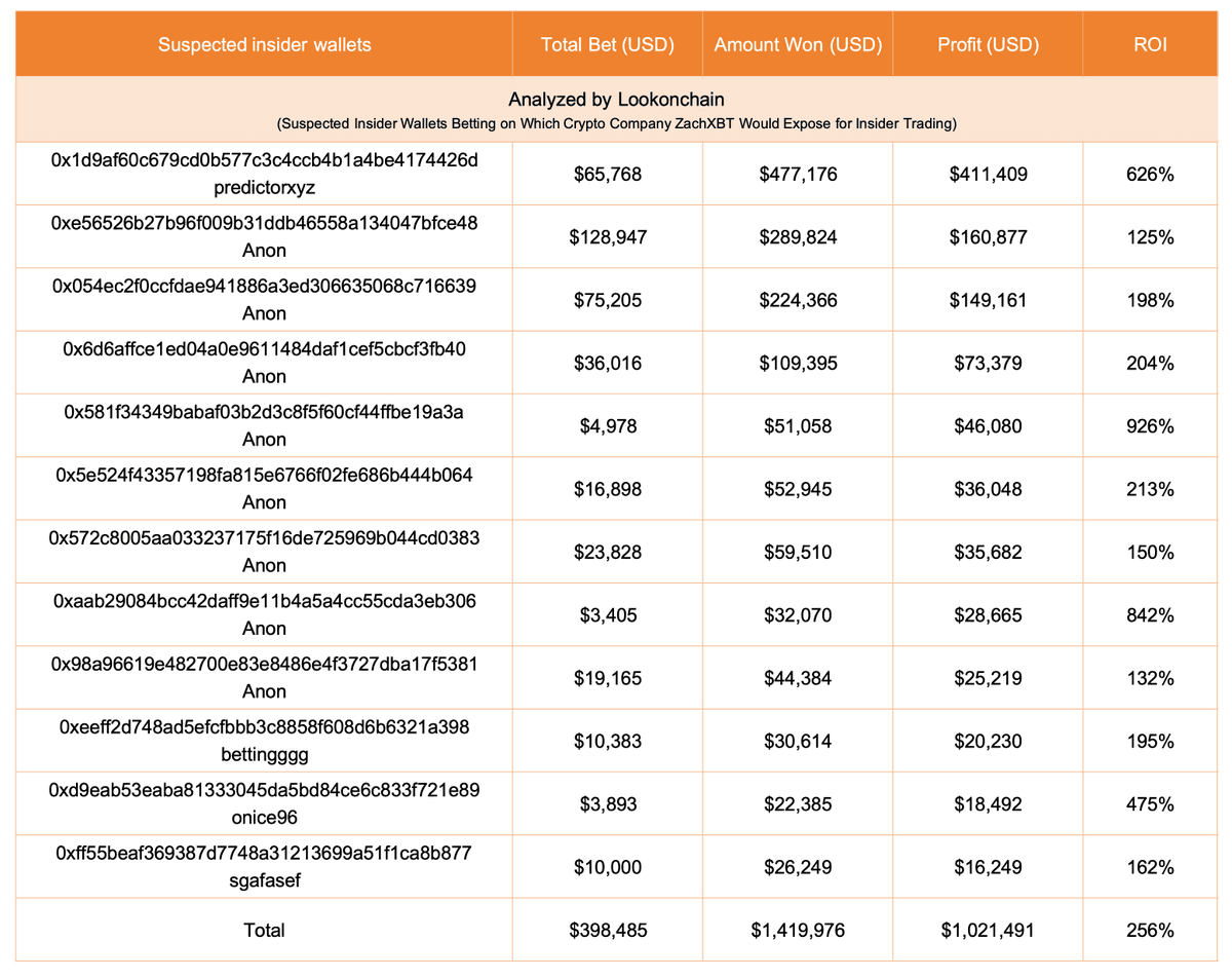 - Investigations reveal that many **insider wallets** profited significantly by betting on **which crypto entity ZachXBT would accuse**, with some wallets directly linked to **Axiom** or exhibiting **suspicious, concentrated trading volumes**.