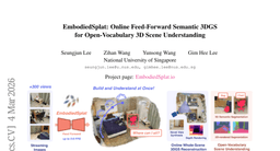 EmbodiedSplat introduces online feed-forward semantic 3D scene understanding capable of open-vocabulary recognition. It enables object-centric perception in dynamic environments, supporting trustworthy autonomous operation in unstructured spaces.