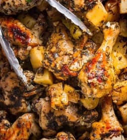 Garlic Butter Roast Chicken with Potatoes and Veggies: A classic one-pan roast that marries crispy skin, tender meat, and well-roasted vegetables, embodying convenience and budget-friendly flavor.