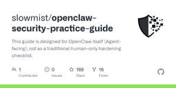 - GitHub repositories such as slowmist/openclaw-security-practice-guide offer agent-facing security hardening checklists.