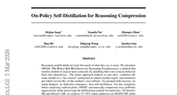 On-Policy Self-Distillation for Reasoning Compression introduces methods for efficiently compressing reasoning capabilities within models, reducing inference complexity while maintaining performance.