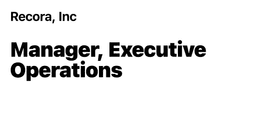 Manager, Executive Operations at Recora, Inc