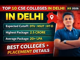 The "✅Best CSE Colleges in Delhi Through JEE Mains 🚀 Fees, Cutoff & Packages" video offers insights into top Computer Science colleges in Delhi, guiding students on cost-effective and reputed options within urban centers.